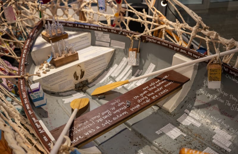 “So, there’s the idea that they’re like treasures that might be found or just noticed within the structure of the boat that we’ve created and hopefully people will just spend a little bit of time noticing these gentle little thoughts and ideas.”