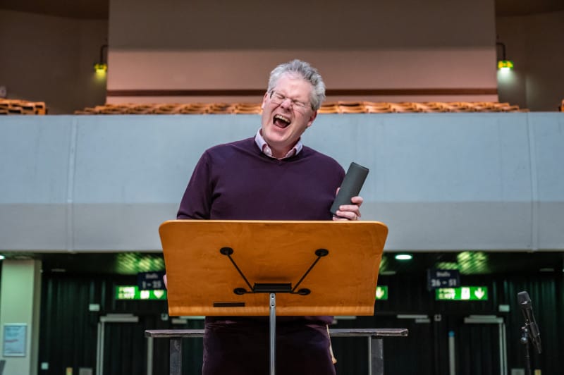 Every year since 2014 he has hosted the Big Sing, a biannual community singing workshop in which singers of all abilities come together for a day to work on music that they perform that afternoon. In the latest, Broadway Melodies, he coached 500 singers learning songs for three medleys from Guys and Dolls, Jesus Christ Superstar and the Rodgers and Hammerstein songbook.